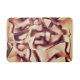 Curved brownish red or burgundy shapes, beige tone bath mat