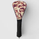 Curved brownish red or burgundy shapes, beige tone golf head cover