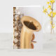This birthday greeting card has an image of a curved soprano saxophone.