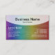 A business card template with a semi-transparent curved header area for the company name and business type etc, with name, job title and other contact details in the section below. The reverse side of the card has been left blank although the base colour is derived using a semi-transparent white image so it matches the semi-transparent header on the front. This can be left blank which is useful for writing notes or can be further customised and/or used for additional text/graphics. This version also has a semi-transparent white texture overlay on both the front and back and a semi-transparent rainbow image on the front which creates the dark rainbow colour variation.