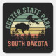 This bold and humourous design features a retro-style sunset backdrop with a dramatic silhouette of a person being launched into the air by a bison. The text "Custer State Park, South Dakota" arches around the scene, emphasising the park's wild and untamed nature. The playful yet cautionary image captures the essence of wildlife encounters in one of America's most famous bison reserves, making it a perfect design for adventurers, park lovers, and those who appreciate a touch of humour in their outdoor experiences