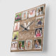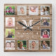 Custom 12 Photo Collage Family Name Monogram Wood Square Wall Clock