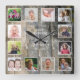 Custom 12 Photo Collage Family Name Stained Wood Square Wall Clock