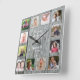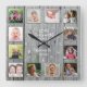 Custom 12 Photo Collage Family Quote Grey Wood Square Wall Clock
