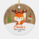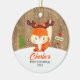 Embrace the magic of your little one's festive milestone with our enchanting "2023 First Christmas" ornament. This adorable ornament features a whimsical fox dressed in a cosy reindeer costume, bringing a touch of playful charm to your holiday decor. Set against a rustic wood-look backdrop, accented with a whimsical North Pole sign and festive decorations, it captures the wonder of the season through a child's eyes.