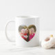 Custom add your own photo mug that can feature two of your own photos in heart shapes against a white background. Great as gifts, for special occasions or for yourself featuring your best family, pet or friends photo.
