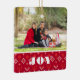 Customise this trendy and festive Christmas ornament featuring colourful bold typography with the sentiment "Christmas Joy" with your own family photo and the date on a red and white Scandinavian Nordic sweater background. Front of this 2-sided ornament features your own 5x7 photo and the back of the ornament features another photo and the year. Easy to personalise with your own photos and year. Start a new tradition to create your family's own personal ornament each Christmas. A wonderful gift to give to parents, grandparents, or to keep for yourself. Also available in other styles. Design © by TK Goforth.