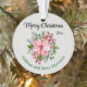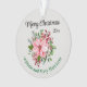 Merry Christmas greeting and recipient's name with a beautiful pink poinsettia bouquet are featured on this round 2.87" diameter acrylic ornament. The back has an area for your message and name. The background is a platinum color on both sides and names are forest green. Easily change or remove text to make it yours using the Template provided. Ideal as a package decoration for family and friends. Made of ultra-durable acrylic and lightweight for mailing. See "About This Product" for more information.