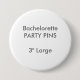 Custom 3" Large Round Bachelorette Party Pin for bride, bridesmaids, mother-of-the-bride names, jokes, fun at the bridal shower, bechelorette night, weekend or party, or wedding to fully personalise. Create your own, make your own, design your own, upload your own photo, design, or use multi font text to customise.