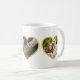 Custom add your own photo mug that can feature three of your own photos in heart shapes with faux gold foil round border against a white background. Great as gifts, for special occasions or for yourself featuring your best family, pet or friends photo.