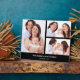 Lovely arrangement of four family photos collage divided in 3 sections with portrait rectangle frame on the left and two landscape black rectangle frames on the right side with a texts on the lower side. Personalise it with your own photos and texts. Perfect a custom made gift for your loved ones.