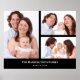 Lovely arrangement of four family photos collage divided in 3 sections with portrait rectangle frame on the left and two landscape black rectangle frames on the right side with a texts on the lower side. Personalise it with your own photos and texts. Perfect a custom made gift for your loved ones.