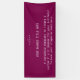 Stand out with this bold and modern 3' x 5' magenta banner template, ideal for creatives, coaches, boutique brands, and event pros. The deep magenta background sets a confident tone, while the minimalist layout makes customisation easy—just add your business logo, title, and slogan to make it uniquely yours.