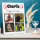 Celebrate your best friend with a custom Photo Collage tabletop plaque. When you have so many fun memories and photos, one photo isn't enough. This poster has 4 photos, a quote, and you can personalise the name of your pet. You can also change the colour of the paw print.  To customise, you can change the colour and font, enter your own quote, and upload your own photos or even change the background colour.  For darker colour shirts - edit the design and change the font colour to white.