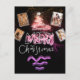 Custom 4 Photos Holography Pink and Golden Glitter Drips and Stars Tree Christmas Postcard.