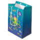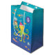 Blue, Turquoise and a green Octopus with colourful fish holds a three layered cake on his tentacle.Customise the age on this Gift Bag for your favourite sea urchin's birthday .