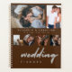 Brown stylish and modern wedding planner with six photos masked within love bold font against navy blue background and white colour for chic text form.