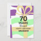 If you are looking for a 70 year old woman birthday card, this colourful card is perfect. It is geared towards grandmas, but the card can be personalised for any title or gender. Instead of "grandma," you can add names like: great grandma, Aunt, mum, sister, etc. Or make it even more personal by substituting the recipient's personal name. The message on the card says: 70 Years Blessed, Happy Birthday Grandma. On the back is a scripture Bible verse which you can change for any wording of your choice, or delete it altogether. It makes a special religious gift for a woman of faith. Grab this unique card today and send a custom card to the 70 year old in your life.