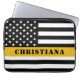 Custom 911 Dispatcher USA Flag Thin Gold Line Laptop Sleeve