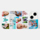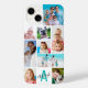 Create your own personalised photo collage custom cell phone case utilising this easy-to-upload photo template design with 9 pictures in different sizes and shapes with a monogram and name in editable font styles and colours against your choice of background colour (shown with a turquoise teal monogram and white background). The sample is shown on an iPhone 14 phone model in the Barely There case style--other models and case style are available on the ordering page. ASSISTANCE: For help with design modification or personalisation, colour change or resizing to fit another phone model, contact the designer BEFORE ORDERING via Zazzle Chat or email makeitaboutyoustore@gmail.com.