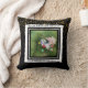 Create your own photo pillow keepsake gift with custom text- Front has favourite family photo or picture of baby, friends, pet, vacation, graduation, wedding photo, etc. framed in a black and white square with torn looking edges and gold foil confetti dots look trim. Has personalised text at top and bottom in black. Solid black background with faux gold foil confetti glitter dots scattered across the top half. Solid black with random gold glitter confetti on back. Add any custom text you wish. Unique keepsake decor for home. Will be a treasured photo gift for so many special occasions, such as engagements, wedding, birthday, anniversary, graduation, new baby, and more. Note: All images are printed. No actual glitter, confetti, or foil. We have other keepsake photo pillows and personalised home decor in our Zazzle shop- angela65. The black background colour on either side may be changed to your favourite colour or to match your decor.