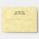 An envelope with room for your custom return address on the back top flap, the inside is lined with a vintage etching of palm trees on a sandy beach and beautiful clouds over calm ocean waves on a faux parchment background.