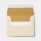 Use this custom envelope in place of the generic white envelopes that come standard with all of the cards and invitations in the Floral Vines Wedding Collection. This envelope is cream with a golden beige or camel coloured interior and features a pre-printed return address on the front. You can easily customise the address on the product order page. The default size is 5 3/4" W x 4 3/8 H (A2) and fits the small greeting cards and invitations. You can order a different size by selecting "customise it" and "Choose your paper type and colour". A7 fits 5x7 invitations and cards. A6 is for the small invitation, but will also fit the small greeting card (note card). A2 is for the small greeting card (note card), but will also fit the small invitation. We also offer this envelope design without the printed address if you would rather write your own or use address labels.