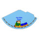 A train is going down the tracks under your personalised message (shown: Happy Birthday Alexander). Change the train's number to the child's age (shown: 3). The background is sky blue.