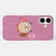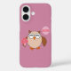 This awesome iPhone case features a cute brown owl with big sleepy eyes. The owl is holding a pretty pale pink balloon and a bouquet of bright pink flowers wrapped in a pale pink cone.
