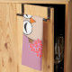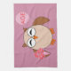 This awesome kitchen towel features a cute brown owl with big sleepy eyes. The owl is holding a pretty pale pink balloon and a bouquet of bright pink flowers wrapped in a pale pink cone.