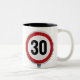 30th birthday - ANY AGE coffee mug with traffic sign with textures and metal bar.