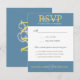 A custom modern wedding RSVP card featuring big initials of the couple with an ampersand in air force colour background