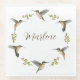 Pretty custom coaster featuring a hand-painted watercolor wreath of botanical branches and Allen's Hummingbirds on a white background. The font style, font size and colour can be changed by clicking on "Edit design".