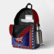 This design features American flag and map pattern with red blue and white stripes. Custom American flag monogrammed name backpack in high quality. This design can be easily edited. If you need help with the customisation please message me via Zazzle.