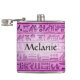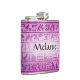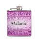 A Custom Ancient Egyptian Hieroglyphs Purple Flask with ancient hieroglyphs engraved on stone in rows, and the option of personalising it with the name of your choice.