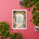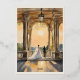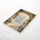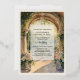 Imagine your guests opening this stunning invitation and admiring its intricate watercolor art. The reverse side’s depiction of the bride and groom on the balcony overlooking the gardens provides a beautiful preview of the love and beauty your wedding day holds.