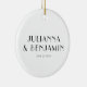 Celebrate timeless love with this custom ceramic ornament featuring a minimalist and elegant white Art Deco design, personalised with your wedding details. Perfect for newlyweds or as a thoughtful gift, this ornament brings a touch of classic sophistication to holiday decor. Its sleek and stylish design makes it a lasting keepsake to commemorate your special day in true vintage-inspired fashion.