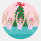Custom Artistic Swimmers Illustration Christmas Classic Round Sticker