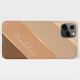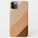 Contemporary dark coffee brown, tan, beige, and girly glamourous faux gold coloured striped pattern cell phone case. With room to customise with a name, monogram, or initials of your choice. Beautiful, modern, and cool cover for the trend-savvy and art-loving hip trendsetter, artsy motif lover who wants to protect their phone from dust and dirt, wear and tear. This design is available for Apple iPhone 6, 7, 8 Plus, 10 or X, XR, XS, 11, 12, 13 Mini, 14, 15 Plus, and Pro Max cellphone cases. Show off your style, look fashionable trendy, and feel stylish with a unique design on a mobile device accessory of your choice.