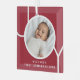 This stylish Baby Boy's First Christmas Photo Ornament is decorated with the word JOY on a maroon red background.
