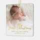 Custom Baby Girl Gold Script First Christmas Photo Ceramic Ornament