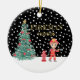A cute red firetruck Christmas keepsake is the perfect christmas decoration theme for a firefighter Christmas gift. It features your child's custom name, custom photo and the christmas year. You can edit all of the text. This one has a christmas theme with a traditional black and white background a a gorgeous decorated christmas tree and snow falling.