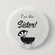 Welcome your newest family member in style and celebrate the special role of grandma, grandpa, mum, dad, sister, brother, etc. with this charming custom baby shower party button! This personalised “I’m the Sister” button is the perfect accessory for sisters to proudly display their excitement at your upcoming baby shower.