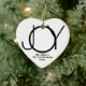 This stylish heart-shaped Baby's First Christmas Photo Ornament is decorated with the word JOY in black on a white background.