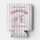 With love from your bachelorette destination. Celebrate with elegance: This pastel pink striped can cooler, featuring clinking martini glasses, makes a delightful and customisable party favour for bridal and bachelorette celebrations alike.