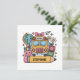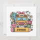 Hop on the creativity bus with this fun cartoon-style school bus greeting card featuring cheerful school supplies, colourful alphabet letters, and cute flowers! Perfect for teachers, students, and school staff, this playful back-to-school illustration is ideal for customising with your name.
