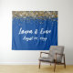 custom backdrop for photo booth, twinkle glitter backdrop for anniversary, wedding photo booth backdrop sparkly, anniversary backdrop cobalt white gold, sparkle backdrop for wedding reception, personalised wedding photo booth prop, blue wedding backdrop for ceremony, elegant reception party photobooth glam, head couple table stylish prop, photobooth rustic decor tapestries names
