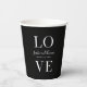 Stylish modern elegant love paper cups featuring the word "Love" in white against an editable background colour (click customise, go to the "Auto Warping, Wrap" layer and change the background colour). Perfect for weddings, engagements and anniversary celebrations.