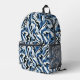 This custom backpack is shown in a black and blue multi colour camo print, buy as shown or add to it.