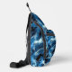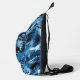This custom backpack sling bag is shown in a blue multi colour camo print, buy as shown or add to it.